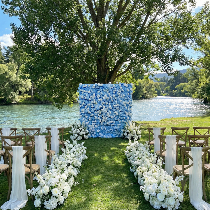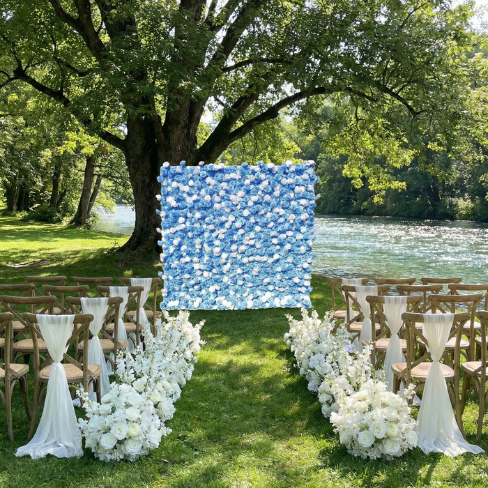 Blue White Gradient Faux Rose Backdrop Wall