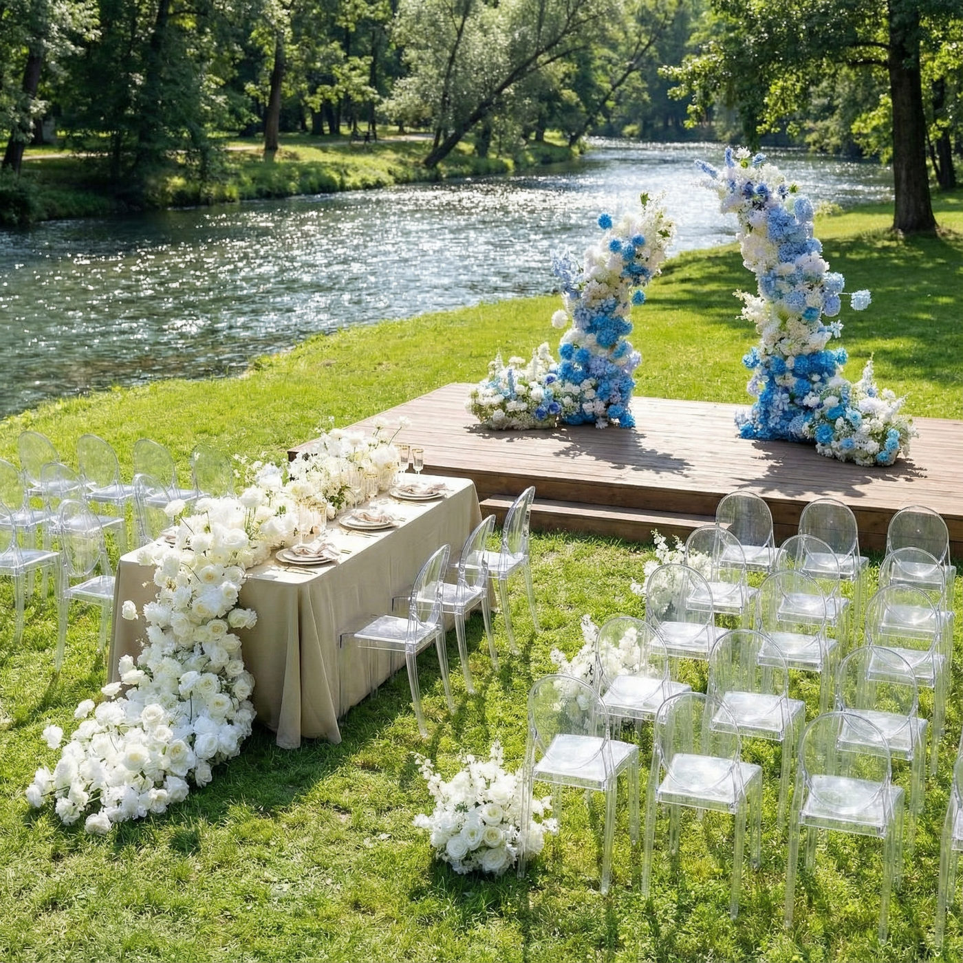 Featuring serene, calming blue tones, this collection creates an elegant and timeless atmosphere for weddings and events.